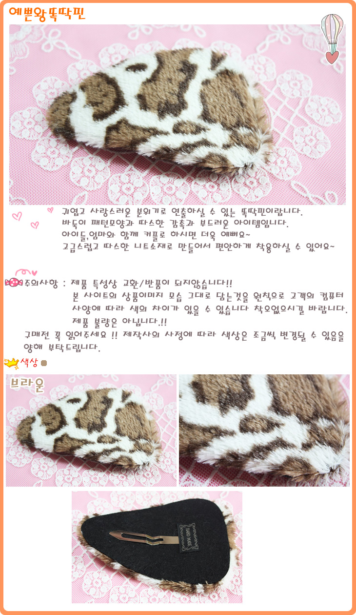 색상 예쁜왕똑딱핀(브라운)