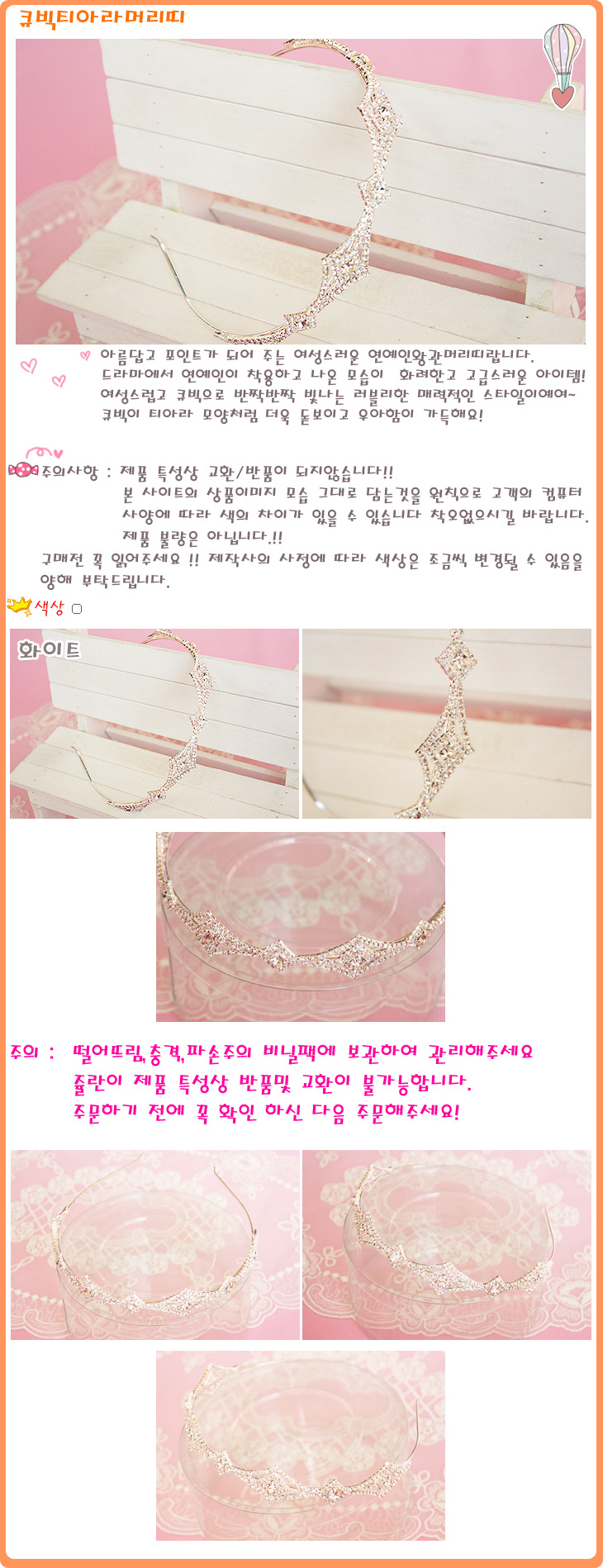 색상 큐빅티아라머리띠(화이트)