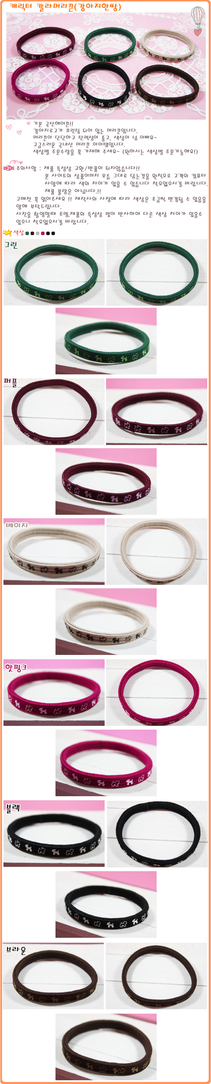 캐릭터칼라머리끈(10개)