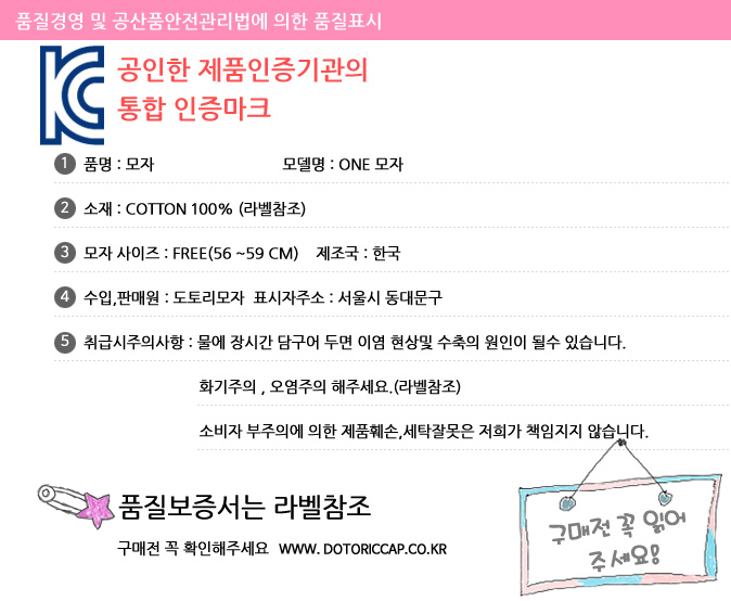 제조사 도토리모자 원산지 MADE IN KOREA