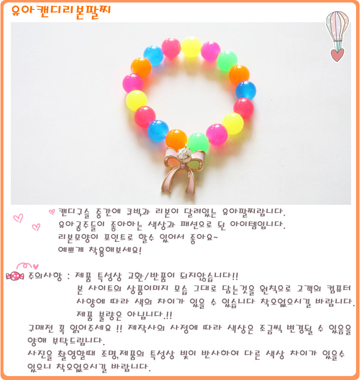 색상 유아캔디리본팔찌(멀티)랜덤